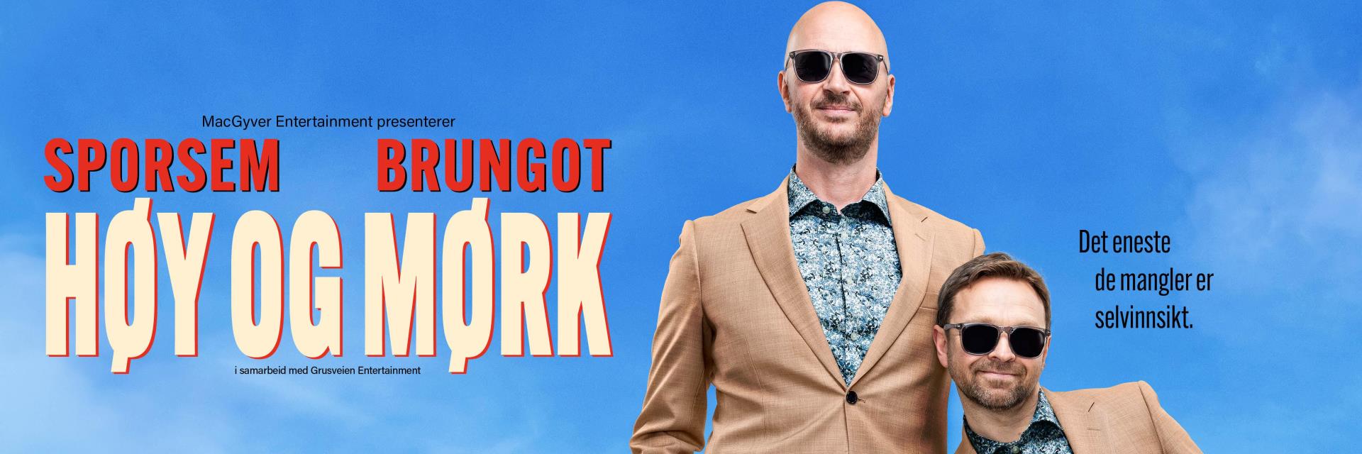 Høy og Mørk er ei framsyning spekka med standup, musikk og parodiar, og vi kan love at latteren sit laust når John og Terje tek føre seg tema som høge, mørke maktsjuke leiarar, beredskap, generasjonskonfliktar og frykta for plutseleg å vere den eldste i familien.